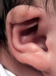 A combination of mixed external ear deformities affecting the shape of an infant’s ears, including prominent/protruding ears to include other shape abnormalities in the outer ear(s).